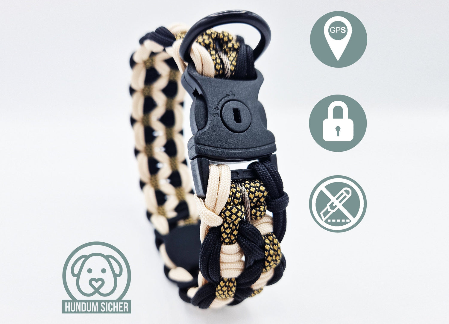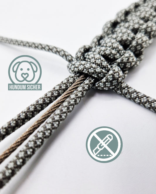 Für das Außenmaterial verwenden wir dabei langlebiges Paracord - das Wasser und Wetter standhält