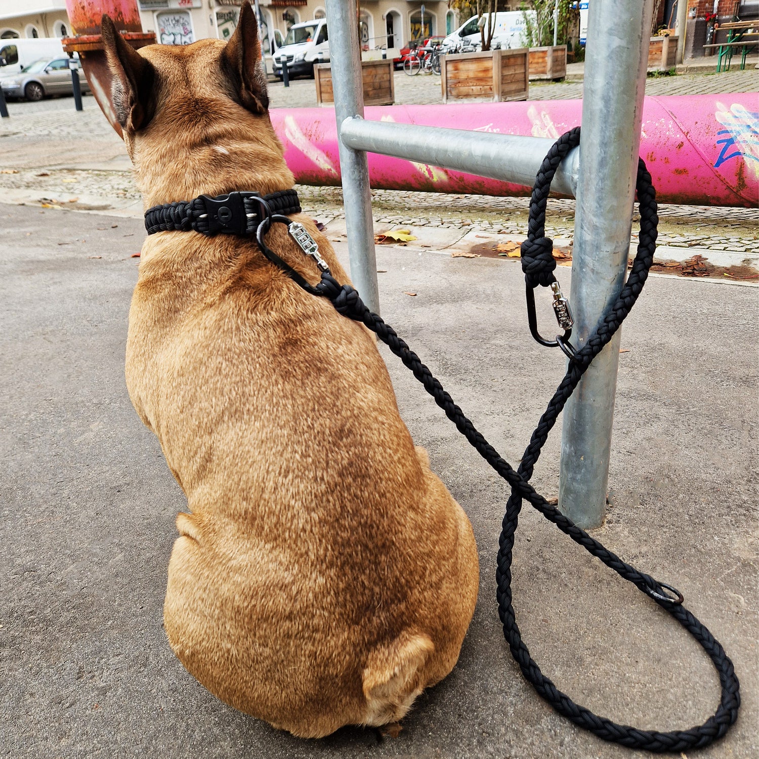 Robust handgefertigt, passend zum Halsband oder zur Leine - und auf Wunsch mit personalisiertem Namensanhänger.