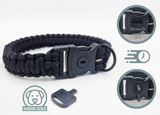 Hundeleine und Halsband Set mit Diebstahlschutz [Schwarz]