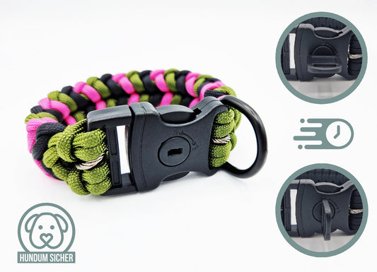 Hundeleine und Halsband Set mit Diebstahlschutz [Grün, Pink & Schwarz]