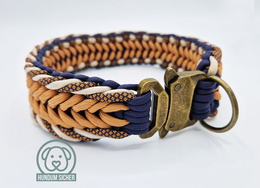 Halsband für Hunde - geflochten aus Paracord [Kupfer, Blau & Beige]