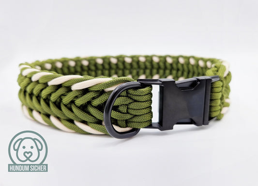 Halsband für Hunde - geflochten aus Paracord [Grün & Beige]