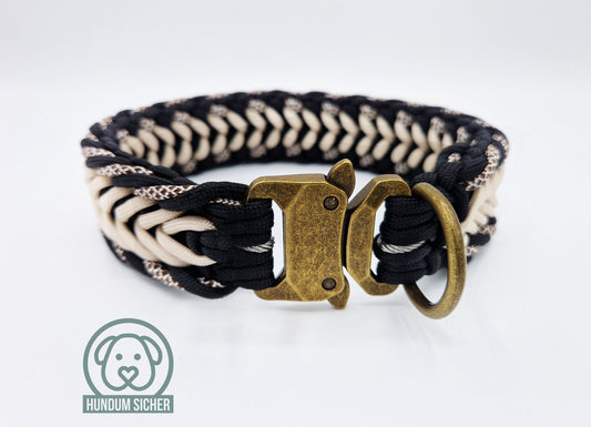 Halsband für Hunde - geflochten aus Paracord [Schwarz, Gold & Beige]