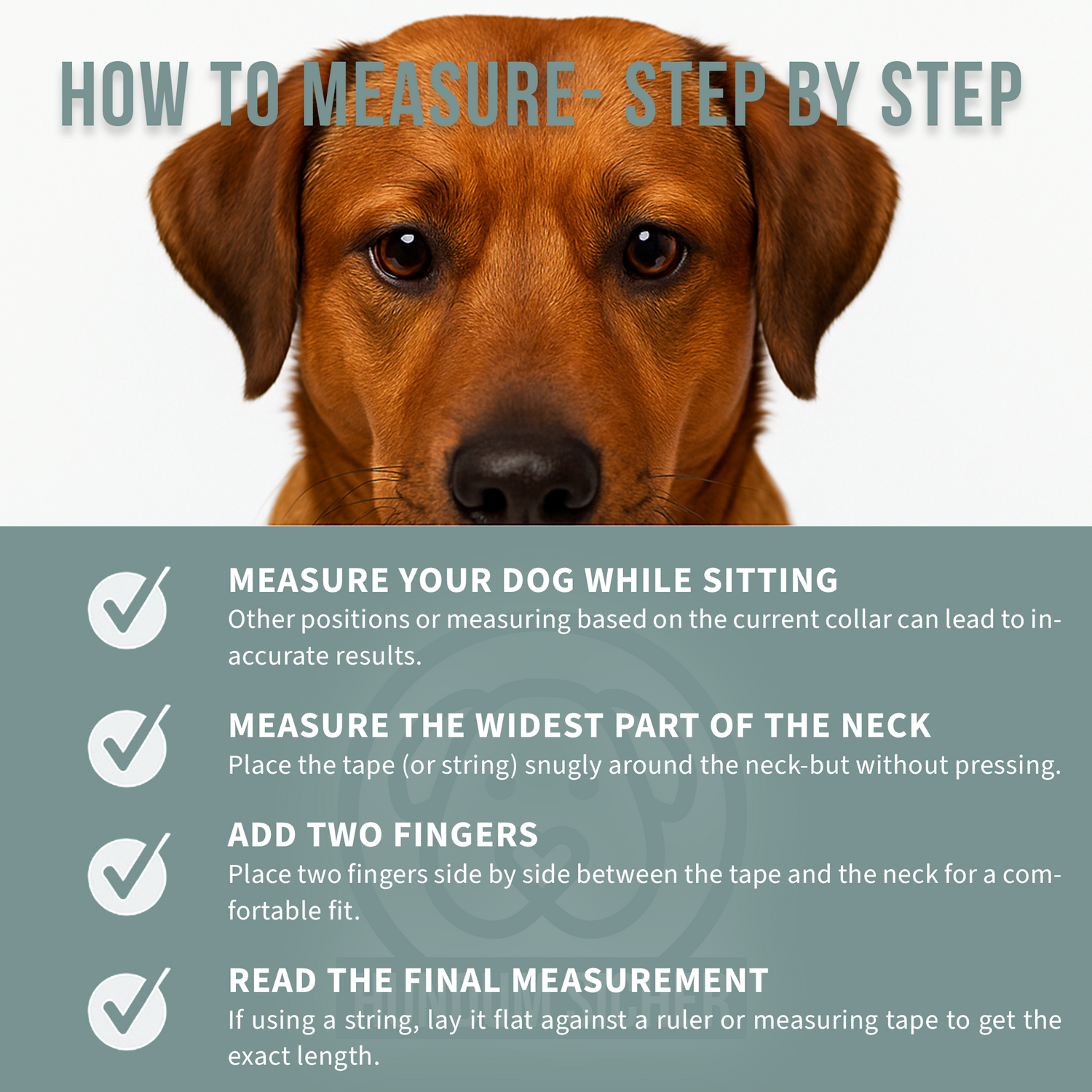 Please measure your dog’s neck carefully using our instructions — the collar should fit tightly enough that it cannot be slipped over the head, yet comfortably enough for everyday wear.
