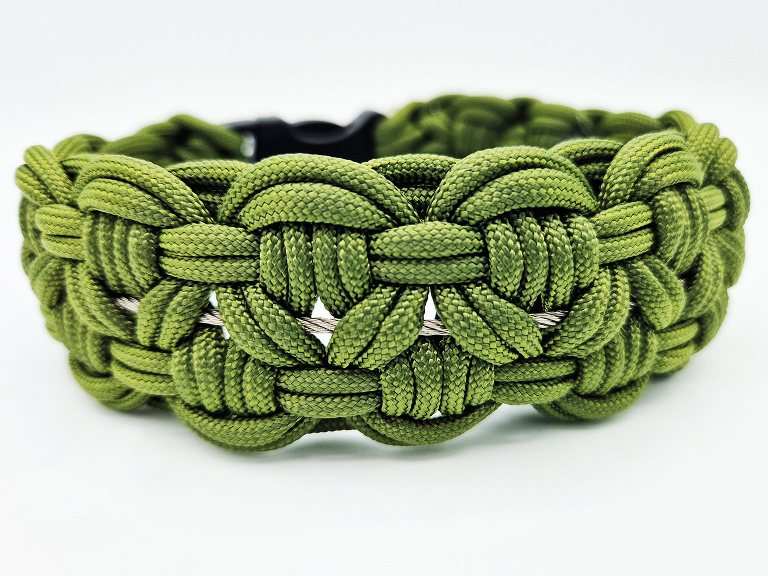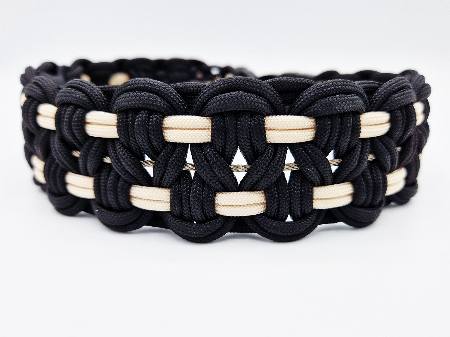 Geflochtenes Paracord mit eingearbeitetem 2 mm Stahlseil im Kern.