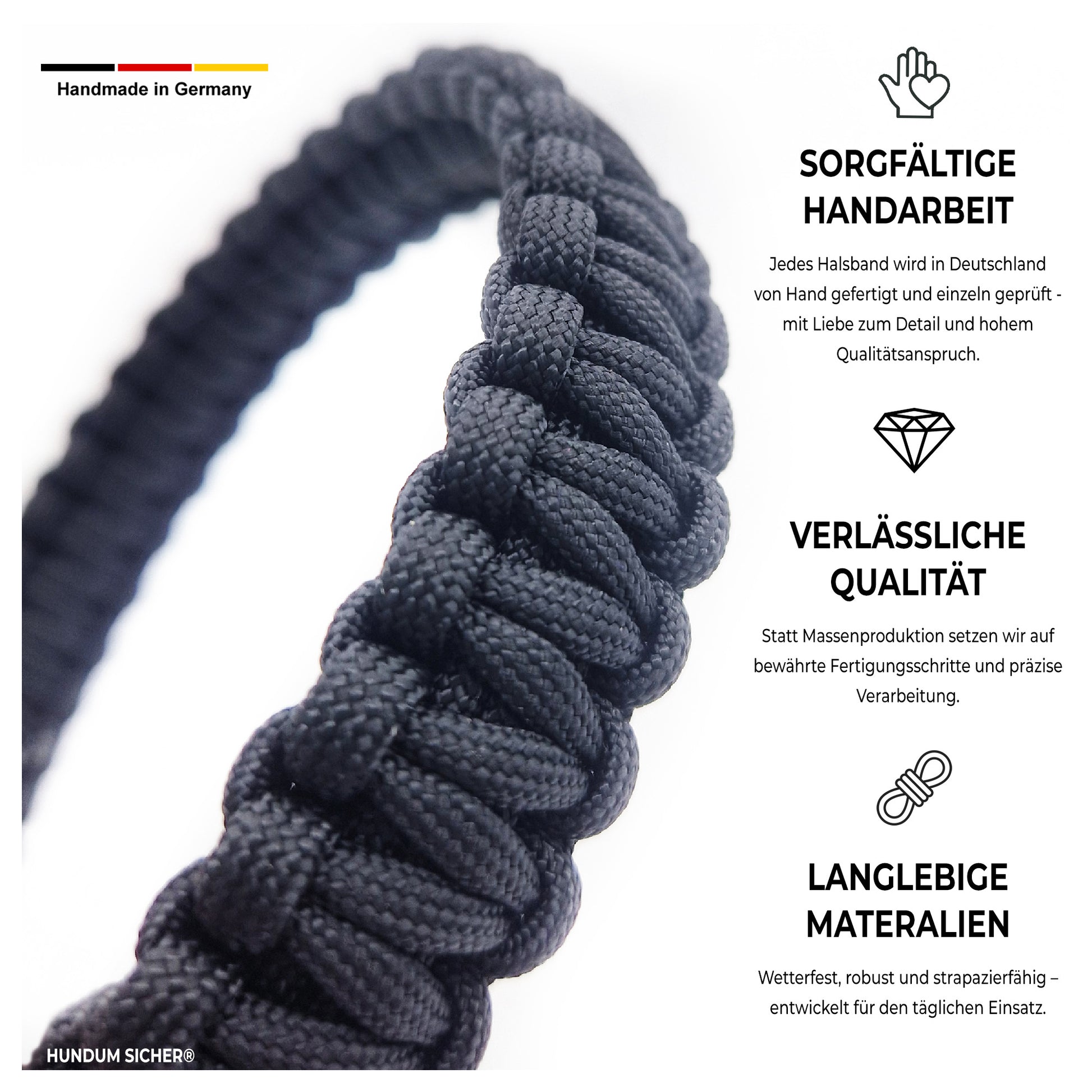 Geflochtenes Paracord mit eingearbeitetem 2 mm Stahlseil im Kern.