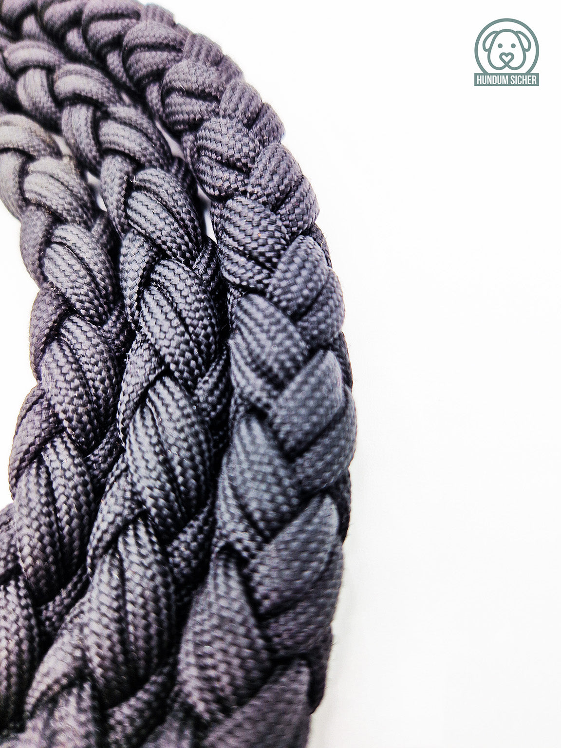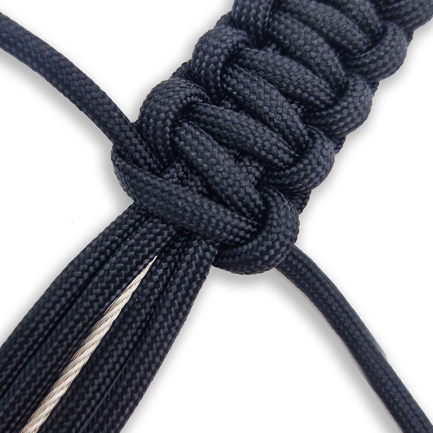 Geflochtenes Paracord mit eingearbeitetem 2 mm Stahlseil im Kern.