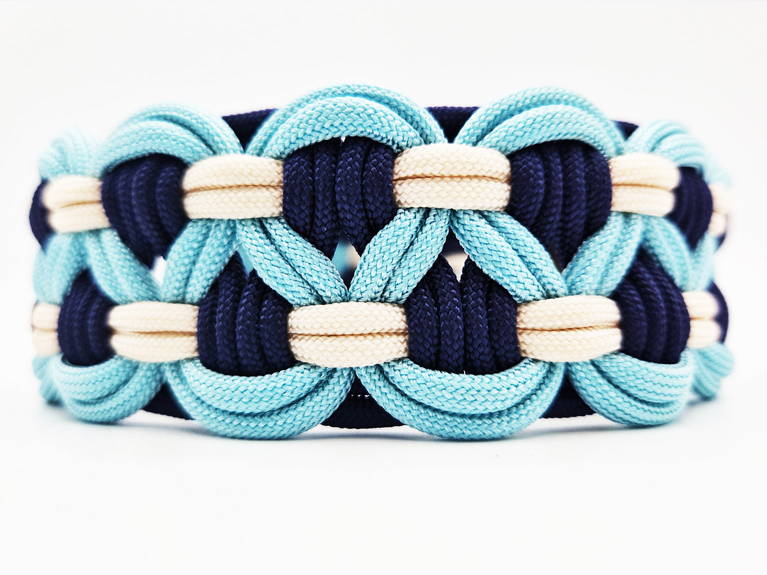 Mit ca. 4 cm Breite und einer stabilen Flechtung ist dieses Halsband besonders robust und formstabil - ideal für mittelgroße bis große Hunderassen mit kräftigem Halsumfang.