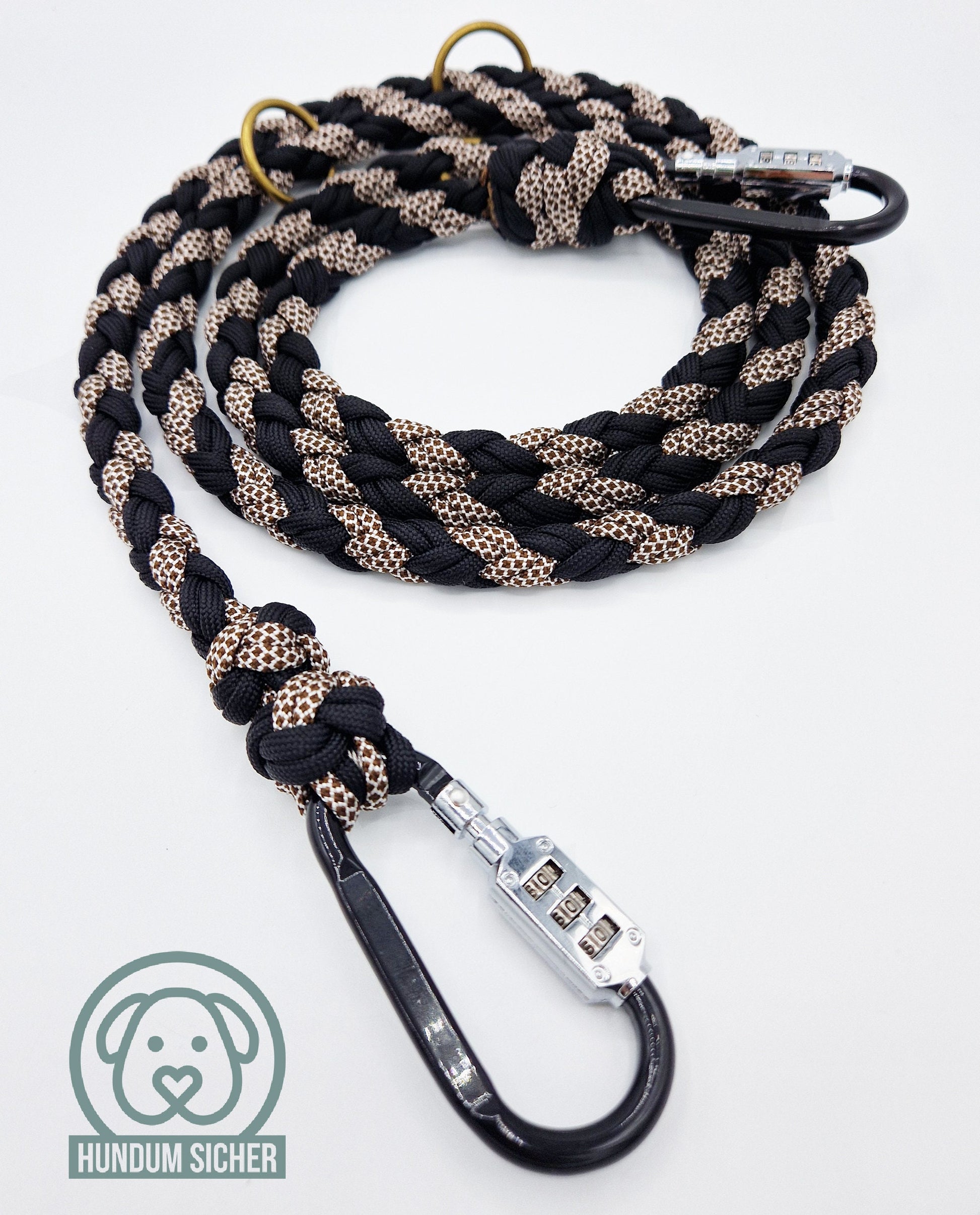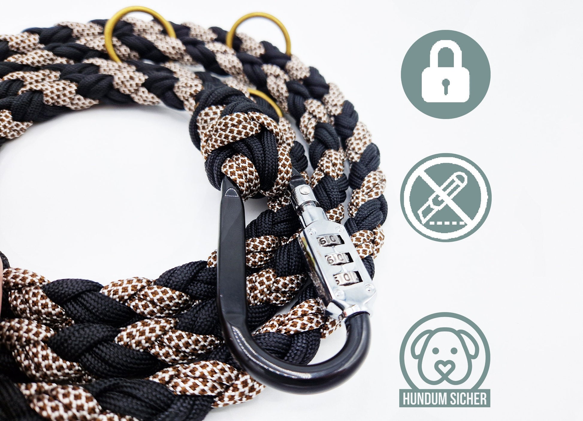 Die Leine verfügt über zwei Schlösser an beiden Leinenenden - die Codes sind frei wählbar