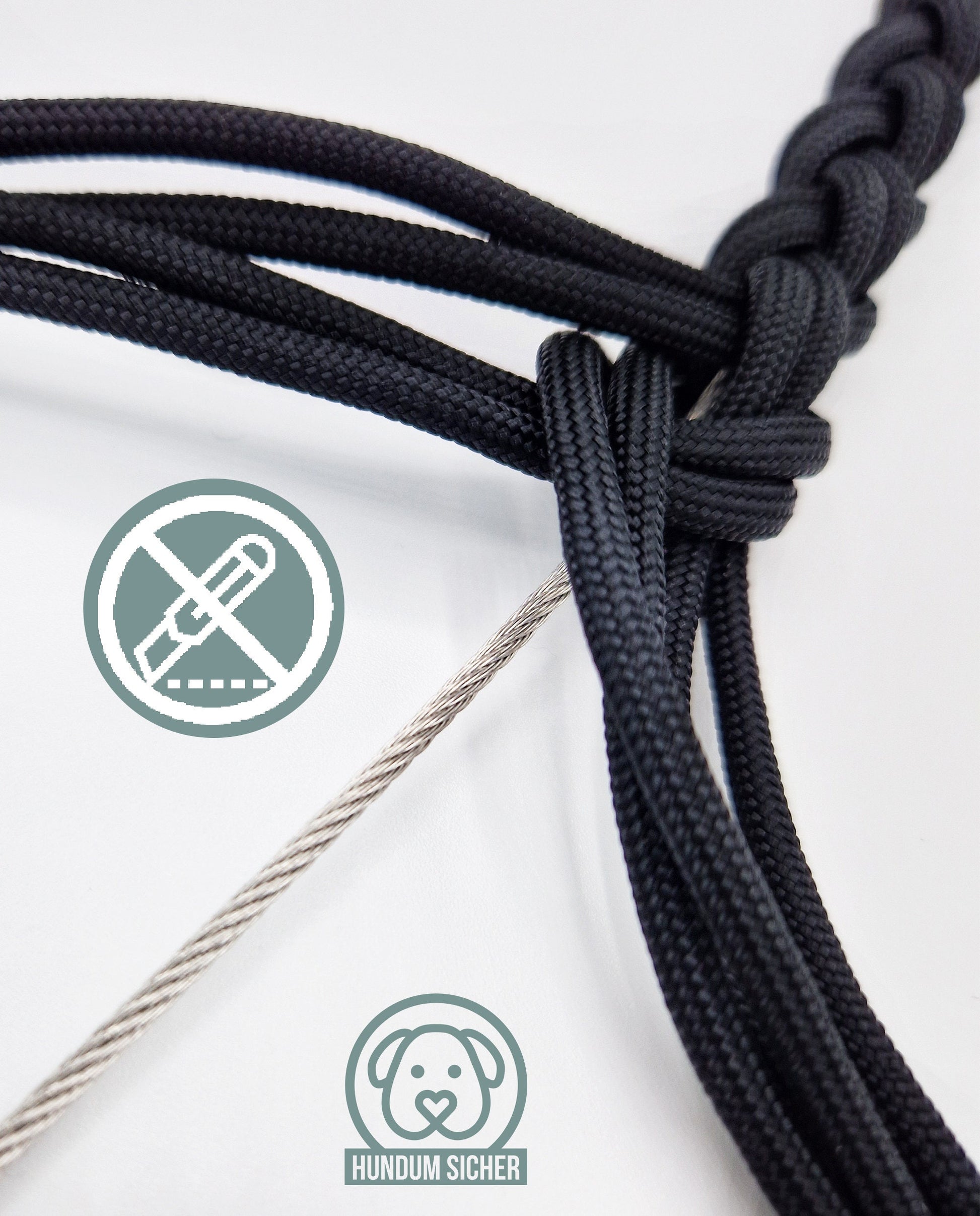 Im Kern der Leine ist 2mm dickes Stahlseil zum Schutz vor Schnitten eingearbeitet