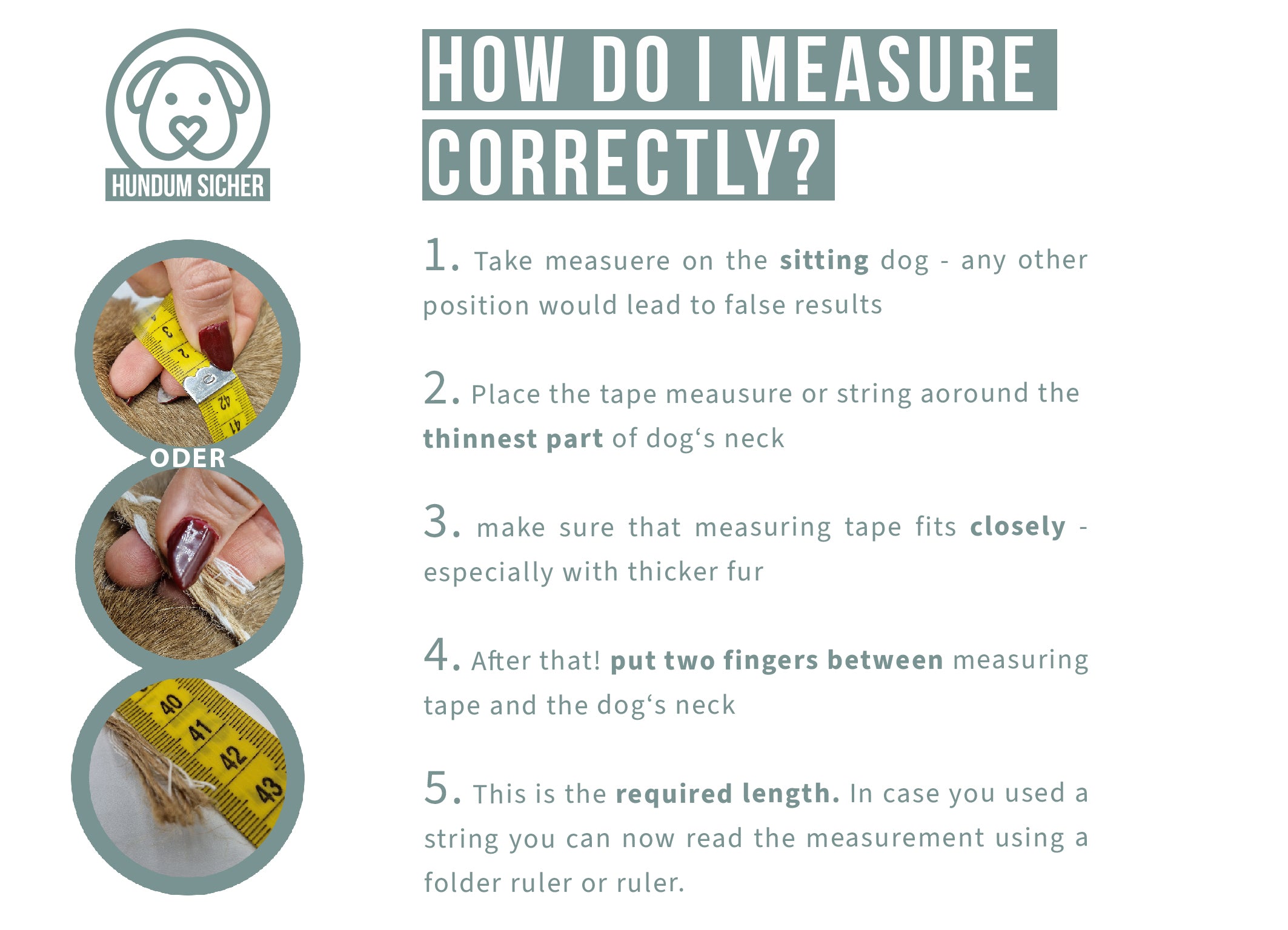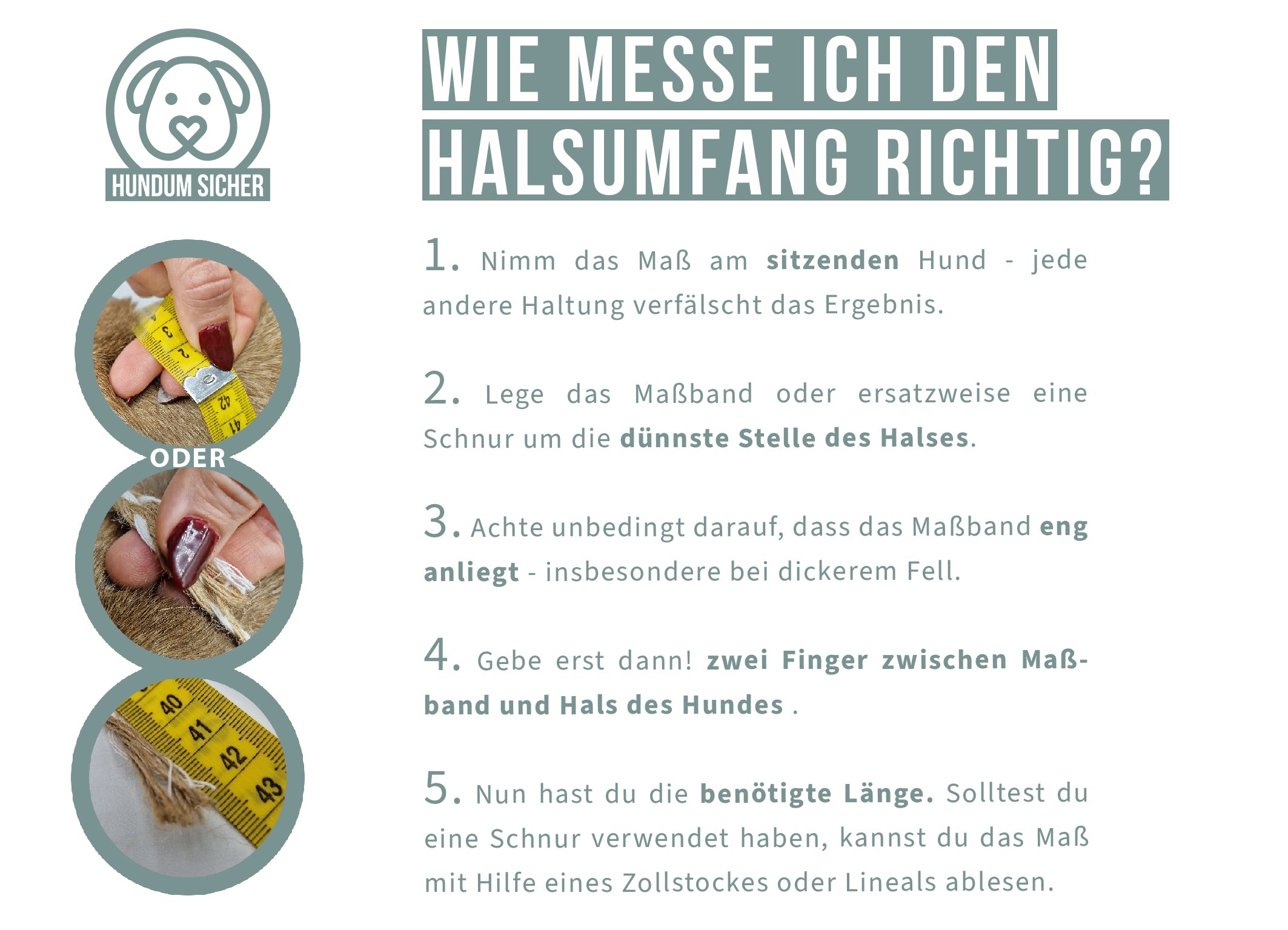 Um sicherzustellen, dass Halsband und Halsschlaufe der Leine am Ende perfekt sitzen, ist es deshalb extrem wichtig, sorgfältig nach unserer Maßanleitung vorzugehen. Bitte zögere nicht uns bei Unklarheiten oder Unsicherheiten vorab zu kontaktieren, wir helfen dir gerne weiter!