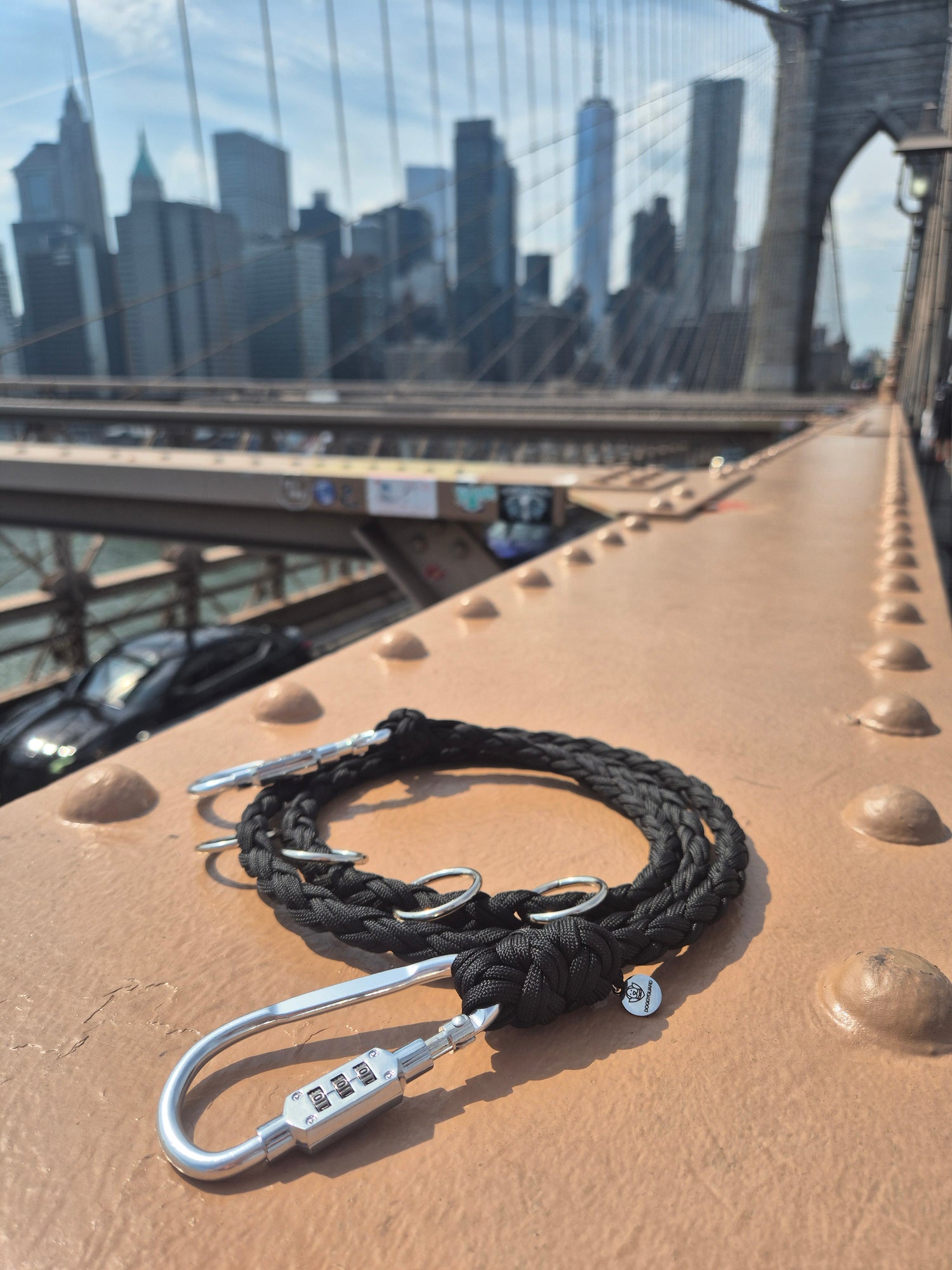 Jede Leine wird in Handarbeit in Berlin gefertigt – individuell nach deinen Wünschen. Im Kern schützt ein robustes Stahlseil vor Schnittversuchen. Zwei abschließbare Schlösser sorgen dafür, dass dein Hund sicher ist, auch wenn du ihn mal kurz allein lassen musst.
