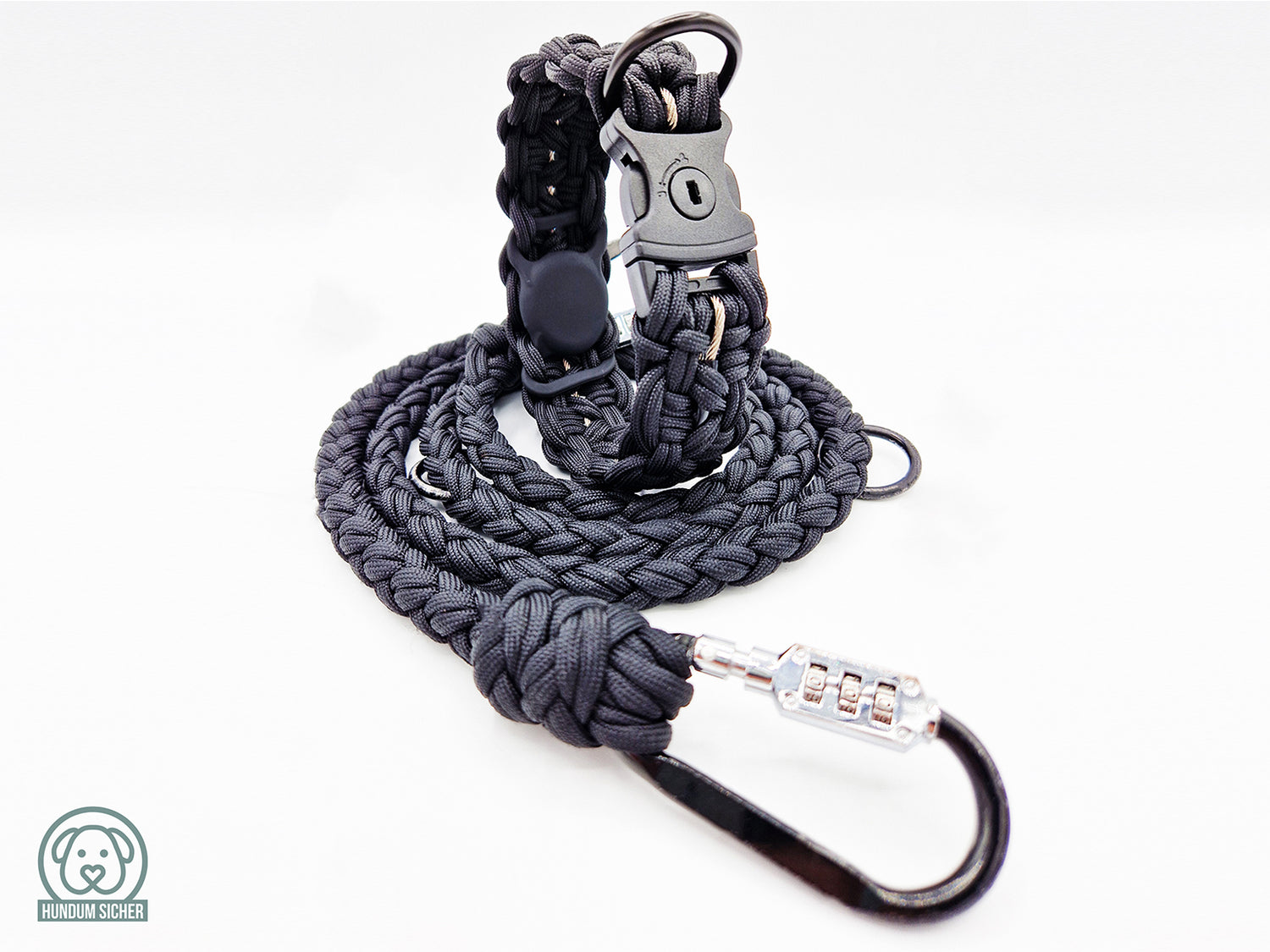 Das Halsband lässt sich per Schlüssel verriegeln - die Leine mit 3-stelligen Zahlenschlössern. So bleibt dein Hund jederzeit geschützt.