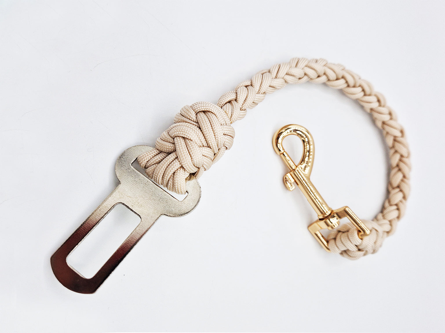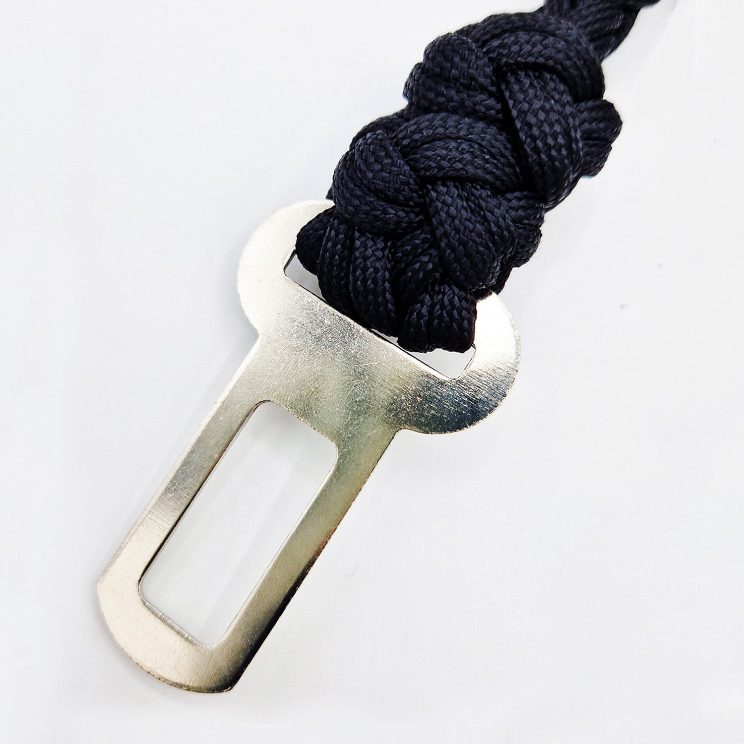 Geflochtenes Paracord mit stabilem Auto-Gurtstecker aus Metall. 360° drehbarer Karabiner aus rostfreiem Edelstahl.
